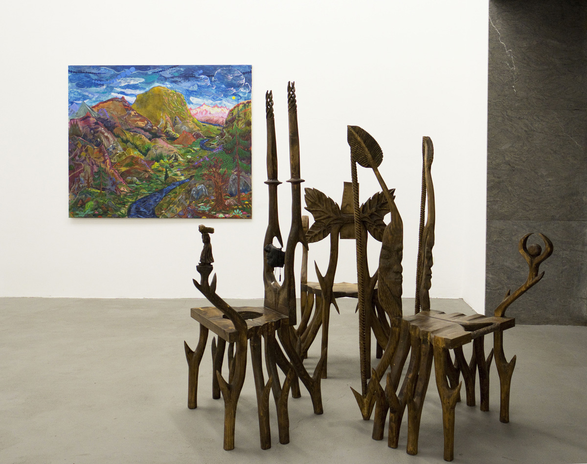 The exhibition "Prati bagnati del monte Analogo" brings together works of art which flirt with outdated, anti-modern and, to a certain extent, anti-social models of existence by using raw, natural materials, traditional techniques, or dated symbolic patterns. Thus, the group show reacts to artistic tendencies whose programmatically stylistic approaches make a clear departure from technologically based aesthetics alluding to a historical "now".